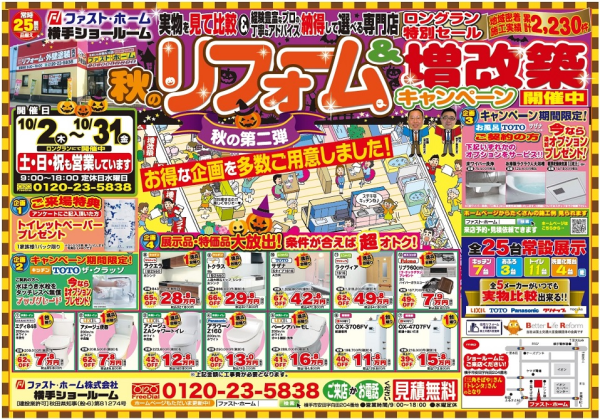 10月2日より「秋のリフォーム&増改築キャンペン 第二弾」をおこないます。いち早く皆さんへお知らせし...