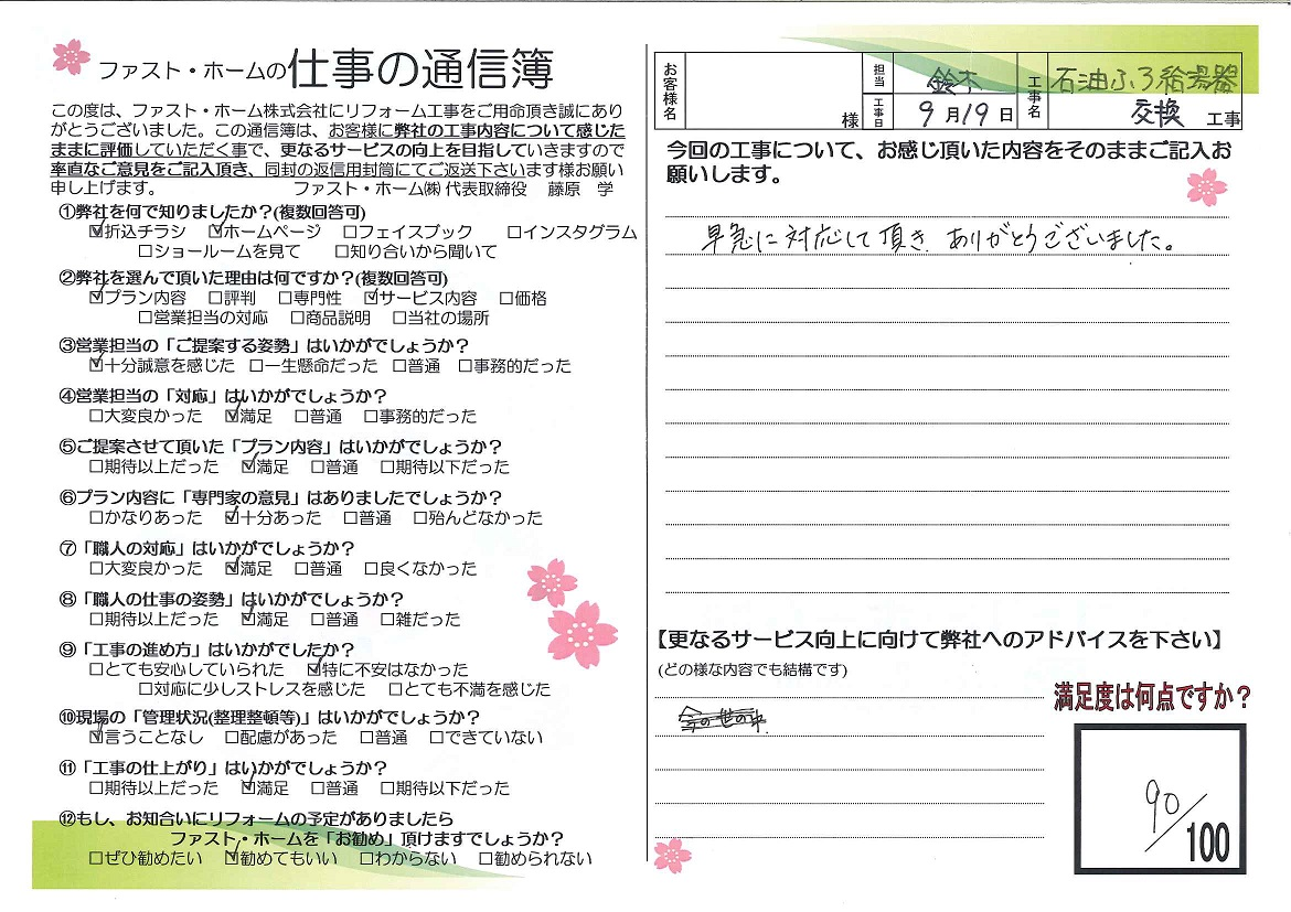 ユニットバス+システムキッチン+石油ふろ給湯器の交換工事をさせていただきました。