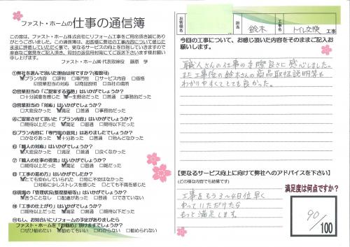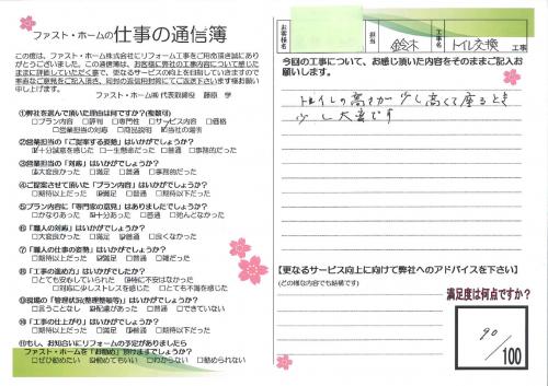 1Fのトイレ交換に続き2Fのトイレも交換していただきました。