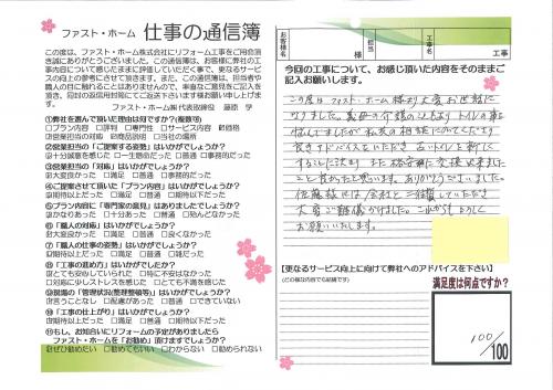 2Fのトイレをウォシュレット付節水型に交換しました。今までウォシュレットがついていなかったのでこれで便利に使えそうです。