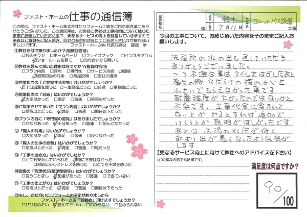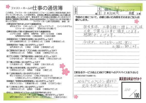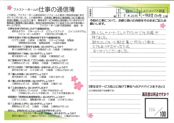 ユニットバス設置+洗面化粧台交換+洗面所改修をしていただきました。
