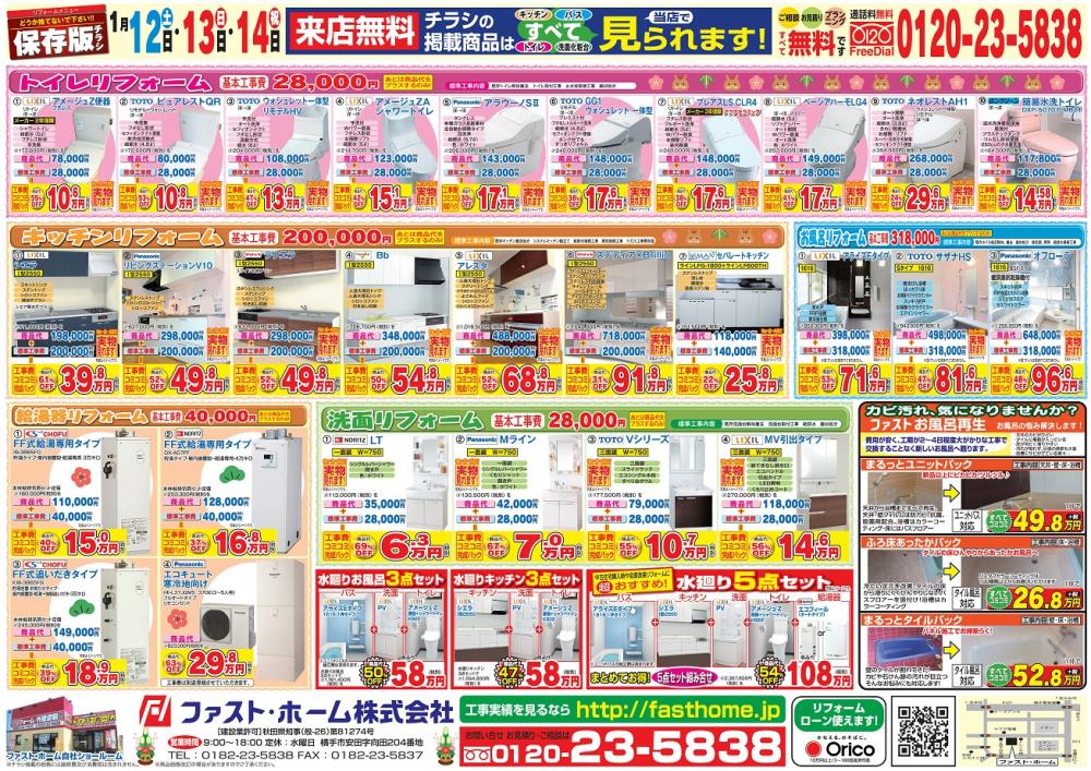 1月12日(土)~14日(祝)の三日間、弊社ショールームにて「新春 水廻りリフォーム祭」を開催しちゃいます。