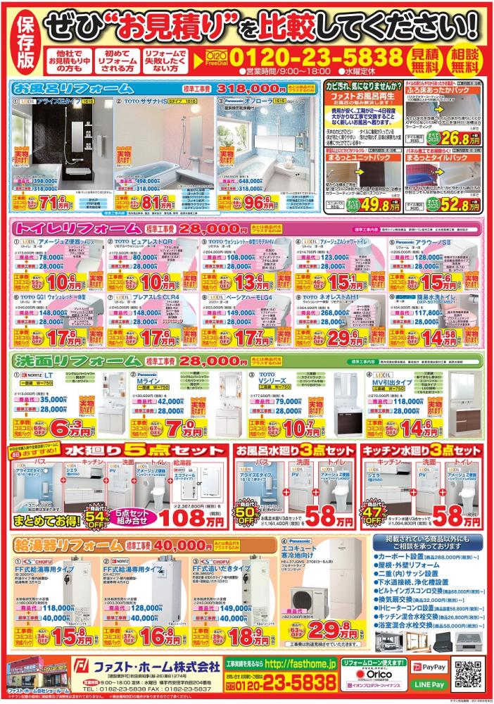 「水廻り・屋根外壁リフォーム」チラシをご紹介します。