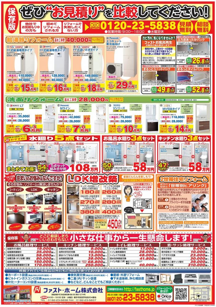 本日23日に新聞折り込みされた保存版「水廻りリフォーム」です。