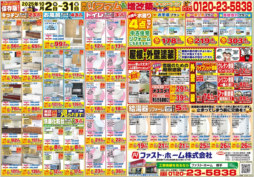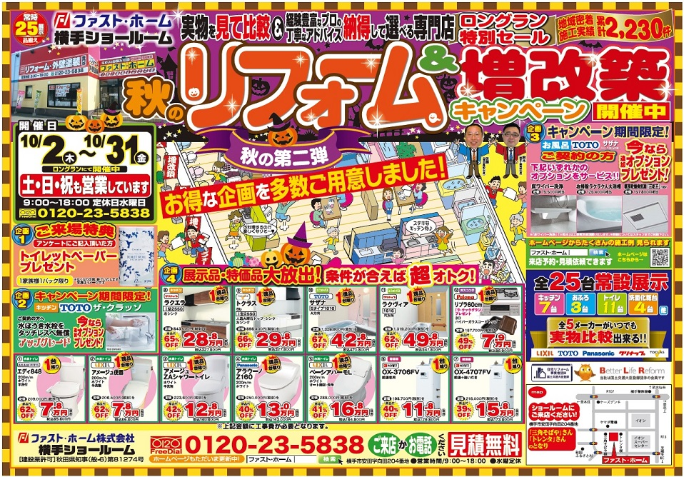 10月2日より「秋のリフォーム&増改築キャンペン 第二弾」をおこないます。いち早く皆さんへお知らせします。