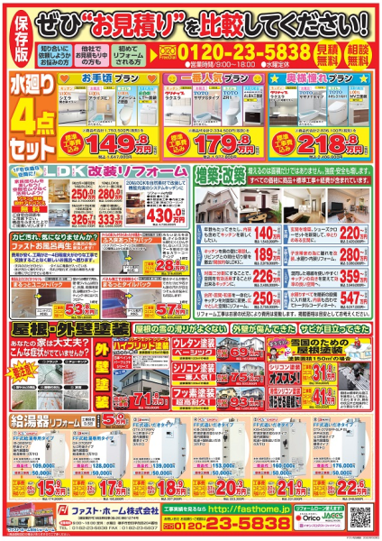 雪解けも進みどんどん春らしくなってきました。水廻り&屋根・外壁塗装のリフォームチラシを皆さんにお届けです。