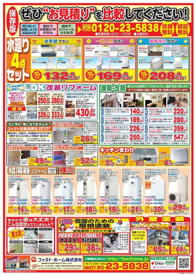「水廻りリフォーム&屋根・外壁塗装」チラシをご覧ください。