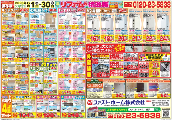 6/1(木)~6/30(金)までです。お得な企画や展示品特価もありますのでリフォームをお考えの方や気になる方、ご来店してみてはいかがでしょうか?