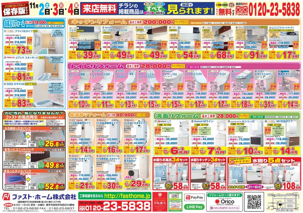 11月2日(土)~4日(祝)の三日間、弊社ショールームにて「令和元年最後の水廻りリフォーム祭」イベントを開催します。