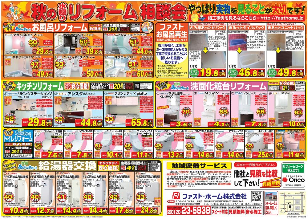 本日15日(金)~18日(祝)までの4日間、「秋の水廻りリフォーム祭」を開催します。