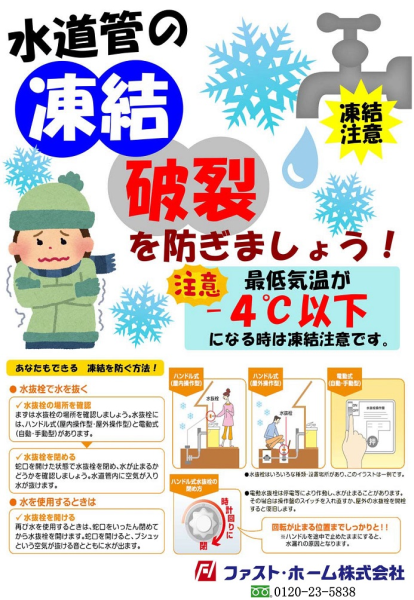 これからの季節、水道管の凍結に注意しましょう!!