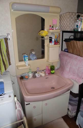 長年使った洗面化粧台だったがかなりくたびれてきて収納も少なかったので交換することとした。