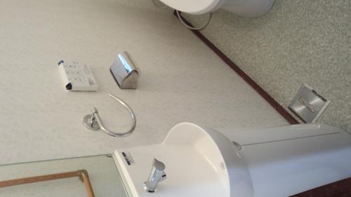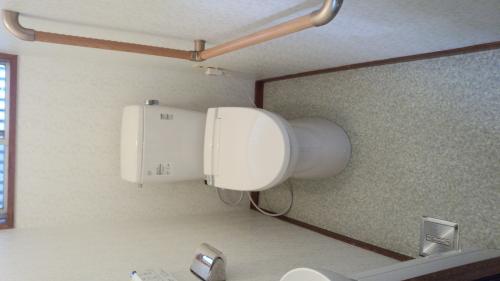 トイレが古くなったのでウォシュレット付トイレに交換、同時に手洗い器を収納付に交換して手摺を取り付けた。