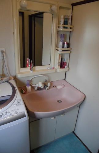古くなって調子の悪い洗面化粧台を収納機能がいい三面鏡へ変えることとしました。