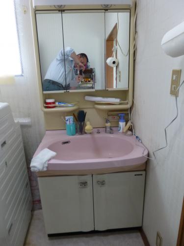 長年使っていた洗面化粧台から水漏れがあり相談して交換することとした。