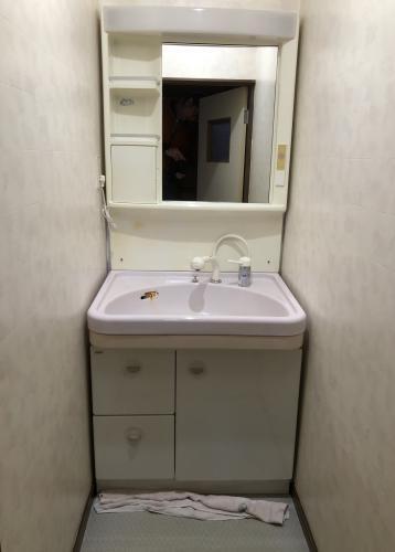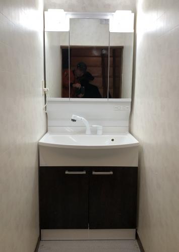 長く使ってきた洗面化粧台の排水管が破損し修理が難しいことから交換することとした。