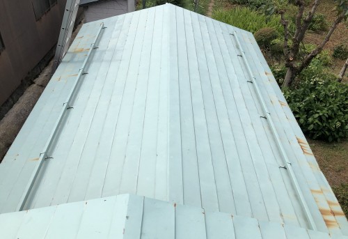 以前の塗り替えからずいぶん時間が経ち全体的に白っぽくなって所々にサビが発生し塗り替えることとした。
