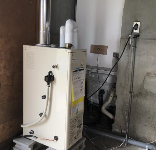 ユニットバスを設置するのと同時に「風呂釜」から石油ふろ給湯器にすることとした。