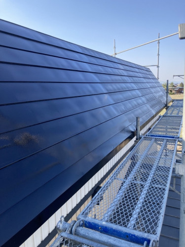 しばらく塗装していなかった屋根を見たら白っぽくなっており、また先端部分が雪のせいで塗装が剥がれている状態だったので点検してもらい塗り替えをすることとした。