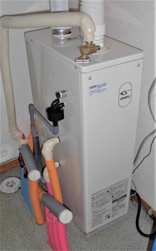石油ふろ給湯器が止まってしまい長く使ってきたことから修理よりも交換することとした