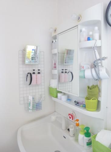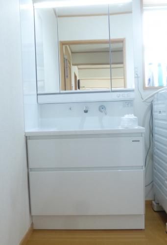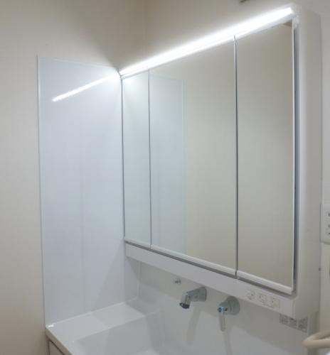 洗面化粧台:タカラ ファミーユ900三面鏡+壁パネル