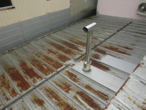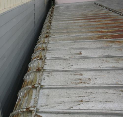 屋根全体にサビが広がり、軒先が腐っていたため補修と塗装をすることとした。