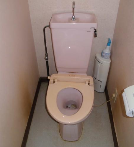 中古で購入した水洗トイレはウォシュレット機能がなく古いものだったので節水型+自動洗浄+ウォシュレット付のトイレに交換することとした。同時に床も水に強いタイプのものを張ることとした。