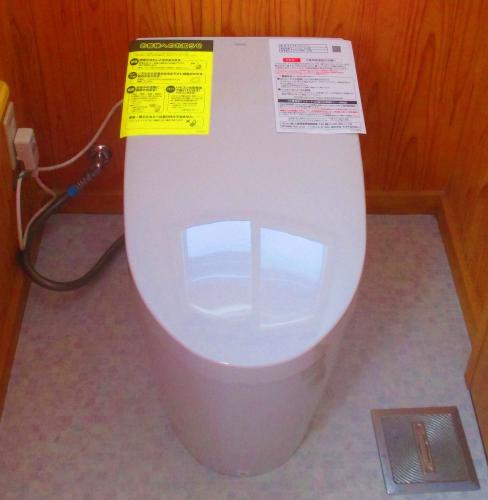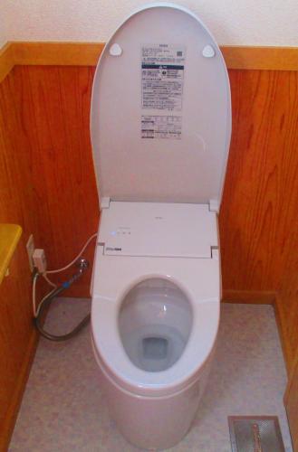 約20年使ったトイレのウシュレット部分から水漏れを起こし交換部品等もないことから超節水型・自動開閉・自動洗浄の最新モデルに交換することとした。