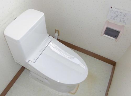 長く使ってきた水洗トイレの袖操作部分下側から水漏れを起こし始めて節水型のリモコンタイプの水洗トイレに交換することとした