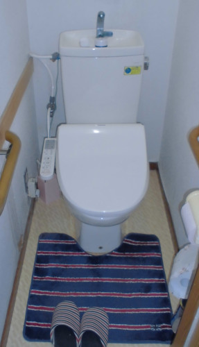 長く使ってきた水洗トイレだったが、現在の節水型+タンクレス+自動洗浄機能付に替えることとした。またトイレ室が狭く位置を変えることとした。