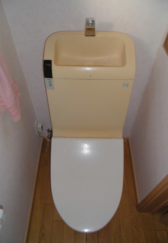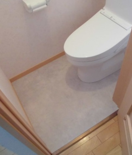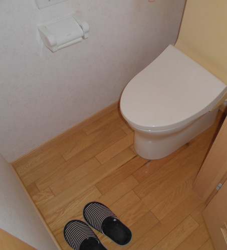 便器から水漏れを起こし交換することとした。同時に汚れて黒ずんでしまった床も張り替えることとした。