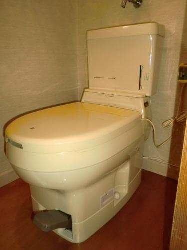 当初、簡易水洗トイレを使用し汲み取りをしていた。浄化槽を設置し水洗トイレにしたかったのだが、敷地内に浄化槽を設置する余裕がなかった為、壊れていたトイレを新しい簡易水洗トイレに交換、一緒に壁紙も張り替えた。