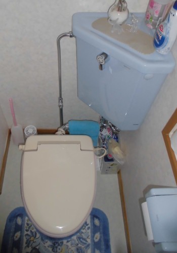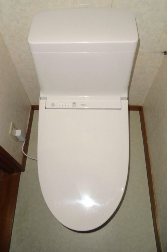 古くなった水洗トイレにウォシュレット機能がなかったため節水型でウォシュレット・自動洗浄機能のついた水洗トイレに交換することとした。