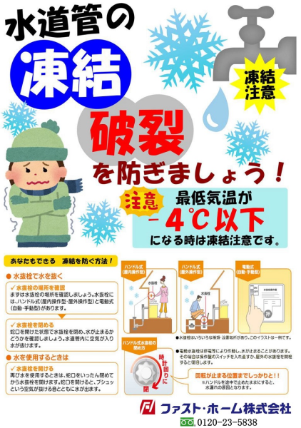これからの季節、水道管の凍結に注意しましょう!!