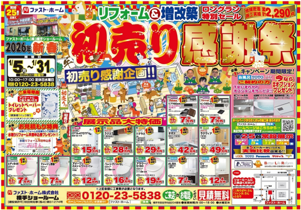 1月5日(月)からの2026年「初売り 感謝祭」チラシをいち早くご紹介します。お得な展示特価品・特価...