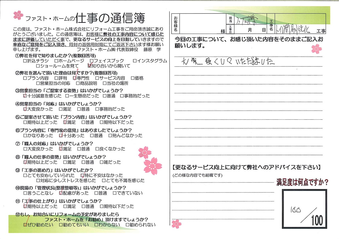 ユニットバス+システムキッチン+石油ふろ給湯器の交換工事をさせていただきました。