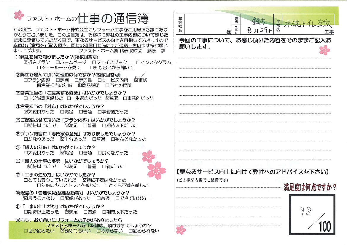 既存トイレを簡易水洗化してそれに伴いトイレ改修工事をさせていただきました