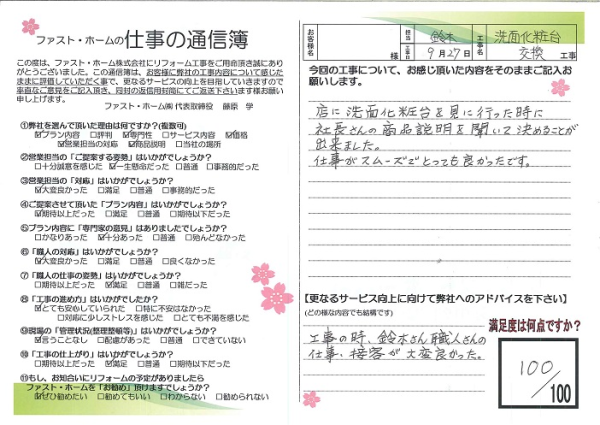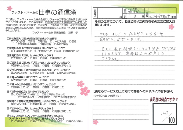 ユニットバスを設置させていただき同時に洗面化粧台交換、洗面所改修をさせていただきました。