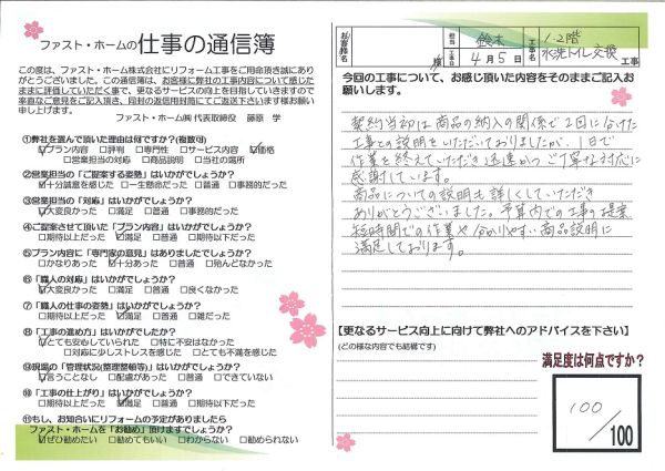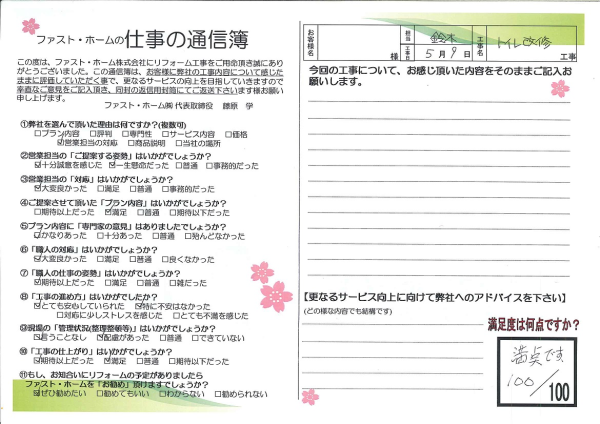 1,2階の水洗トイレを交換していただきました。