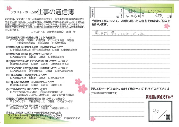レンジフードを交換していただきました。