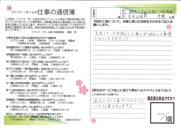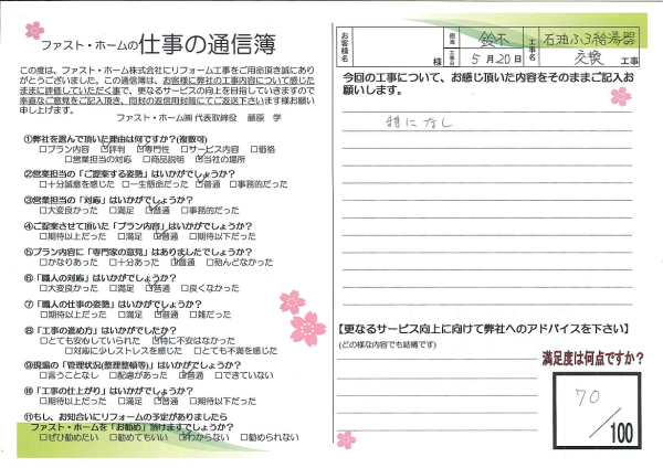 石油ふろ給湯器を交換していただきました