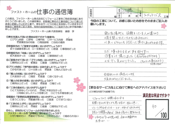 ユニットバスを設置させていただきました。