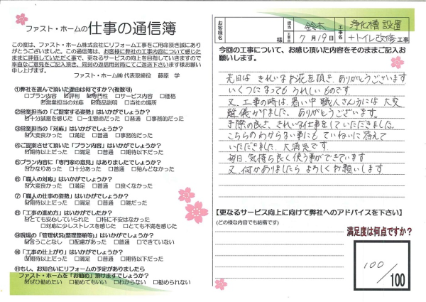 浄化槽設置をしてトイレ改修、トイレの水洗化をしていただきました。