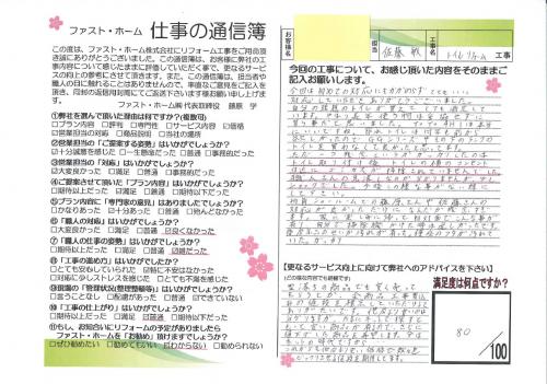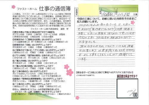 トイレ交換と同時に汚れが目立ってきた床も張り替えました。床材を剥ぎとってみたら手洗器の排水が漏れていたことがわかり、そこから臭気が上がってきていたことも判明しました。これで快適にトイレを使っていただけるはずです。