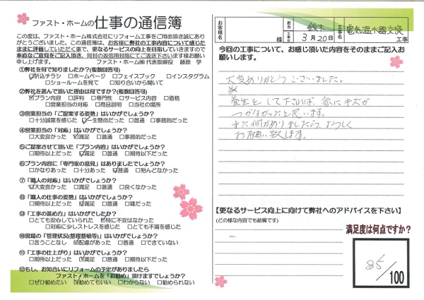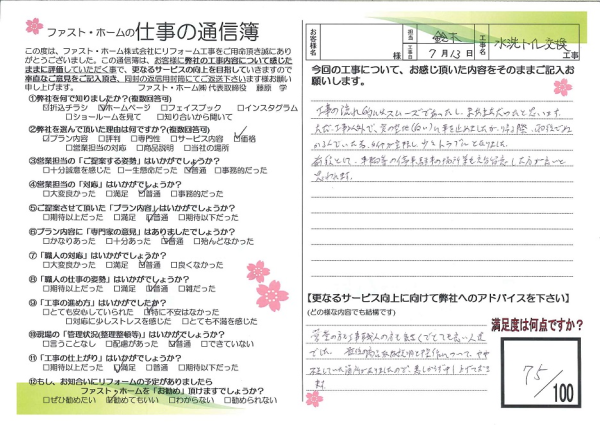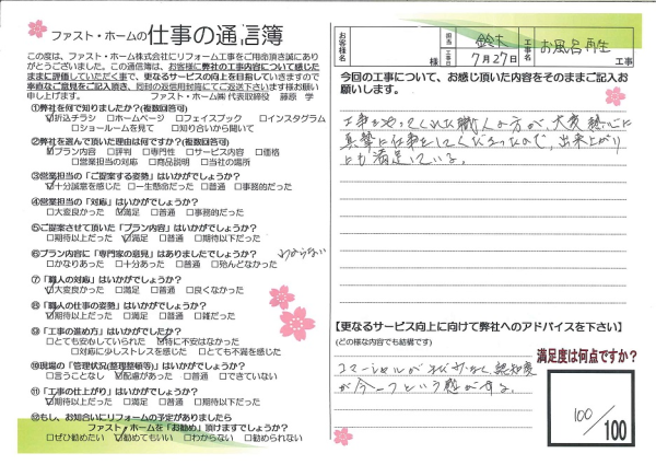 ユニットバス設置+洗面化粧台交換+洗面所改修をしていただきました。