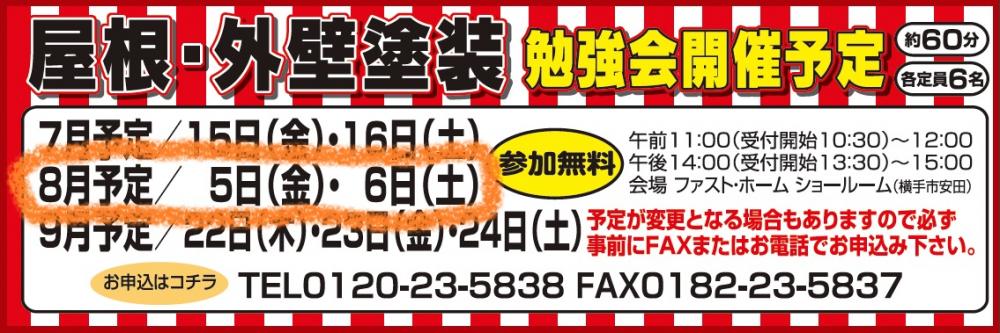 納得した塗替え工事のための「塗装勉強会」の8月開催のお知らせです。