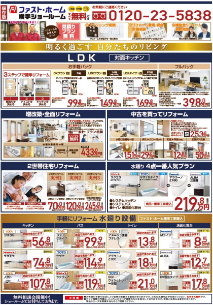 キッチンを中心としたリフォーム、「LDKリフォーム」のチラシです。ご覧ください。