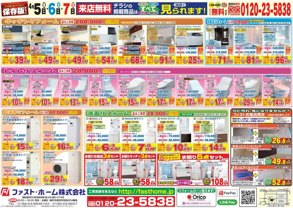 4月5日(金)~7日(日)の三日間、弊社ショールームにて「水回りリフォーム&塗り替えリフォーム」を開催します。