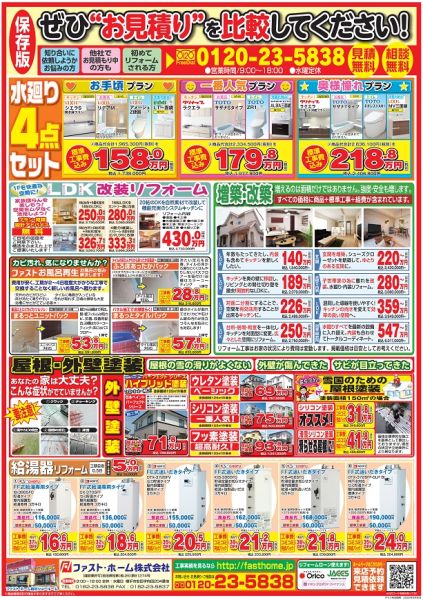 明日から7月です。明日からのリフォームチラシをいち早く皆さんへご紹介します。リフォーム商品でも価格改定(アップ)が次々と出ています。今後もまだ上がるとの情報もあり、リフォームをお考えの方は早めのご相談をお勧めします。