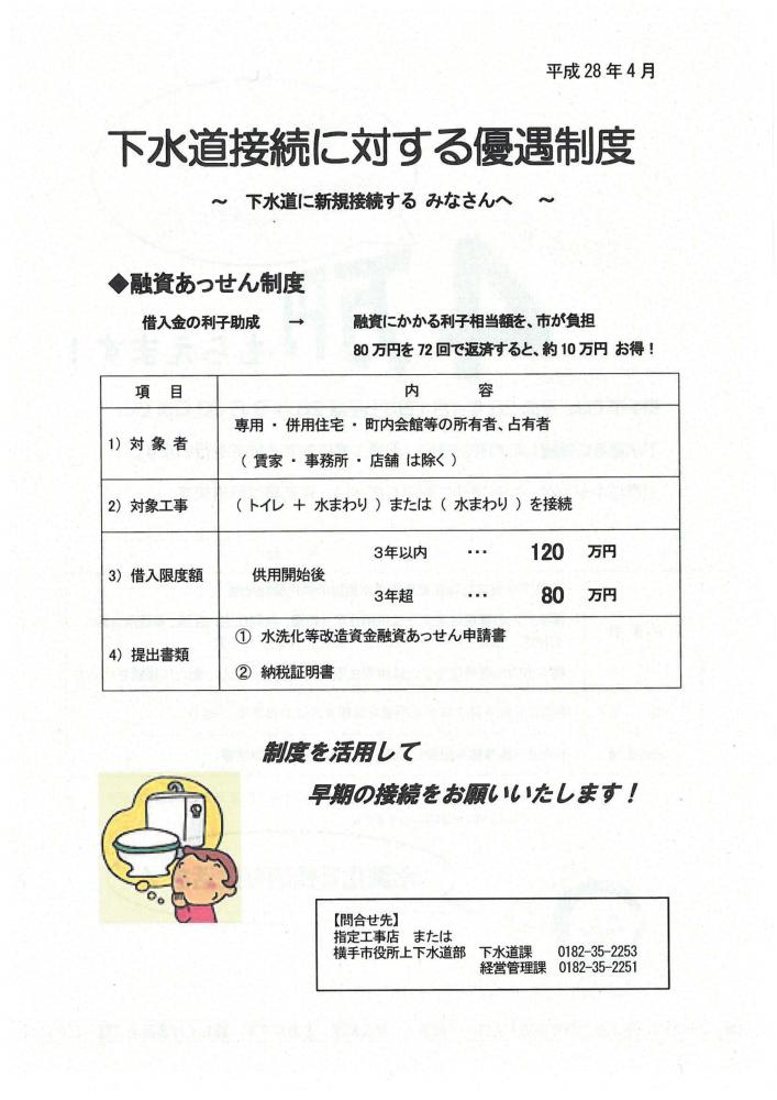 また横手市が利子負担をしてくれる融資制度も発表になっていますのでまだ接続していない方はこの機会に下水道接続を検討してみてはいかがでしょうか?